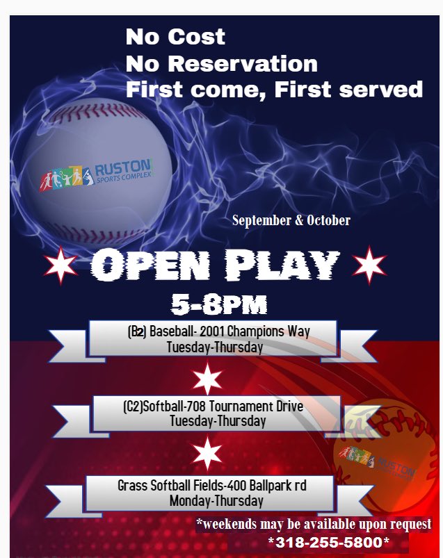 Grass Softball soccerfootball fields 2500 per hour or 25000 per day. Experience Ruston Louisiana Ruston Lincoln Parish Cvb Grambling La. 101 South Maple St Ruston LA 71270 241 miles northwest of Ruston Sports Complex.